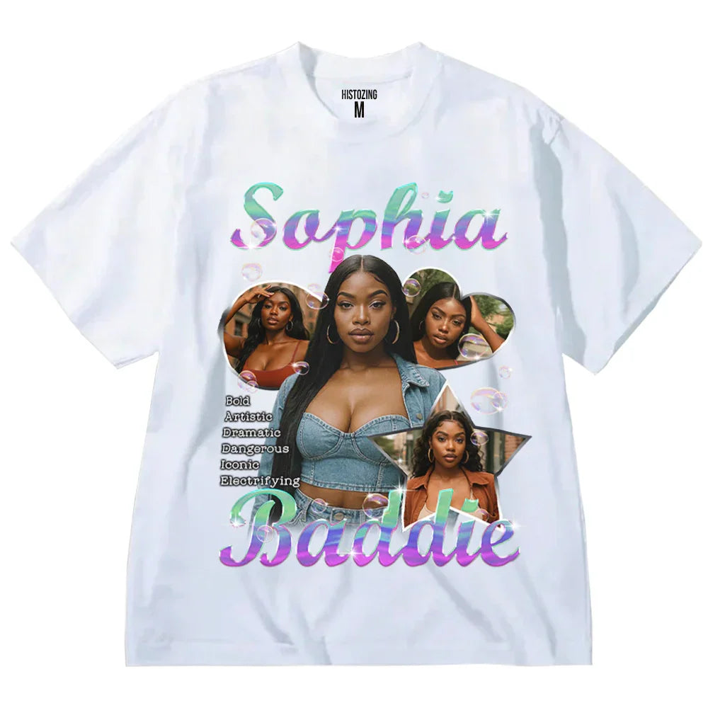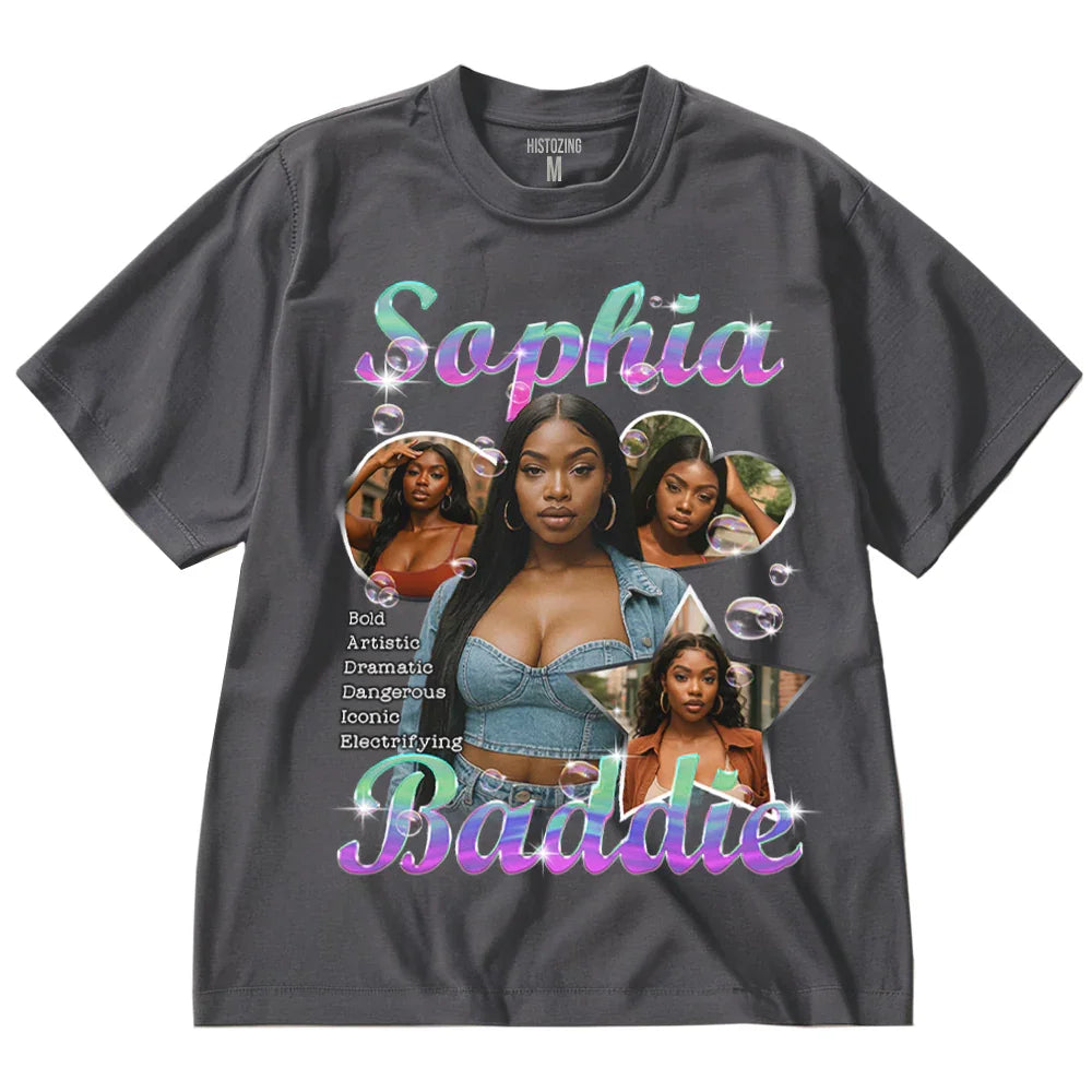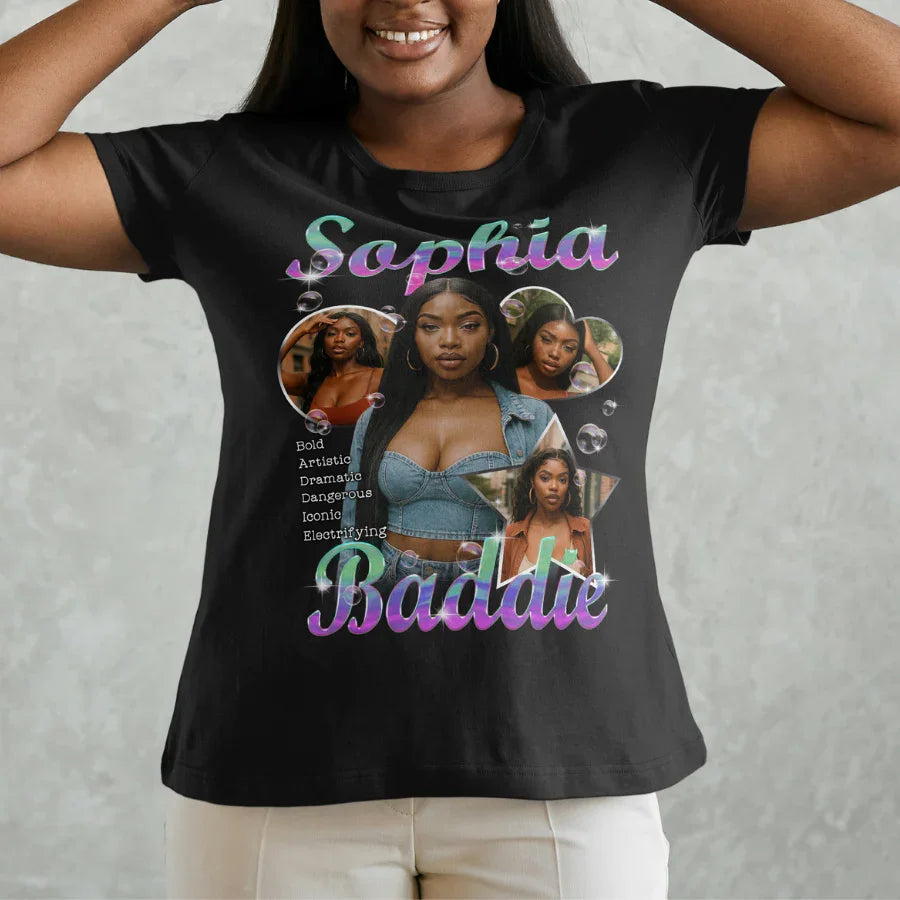 It fuses retro Y2K glam with unapologetic self-confidence, making it the most “bold yet beautiful” and “vintage yet fierce” shirt in your collection.
