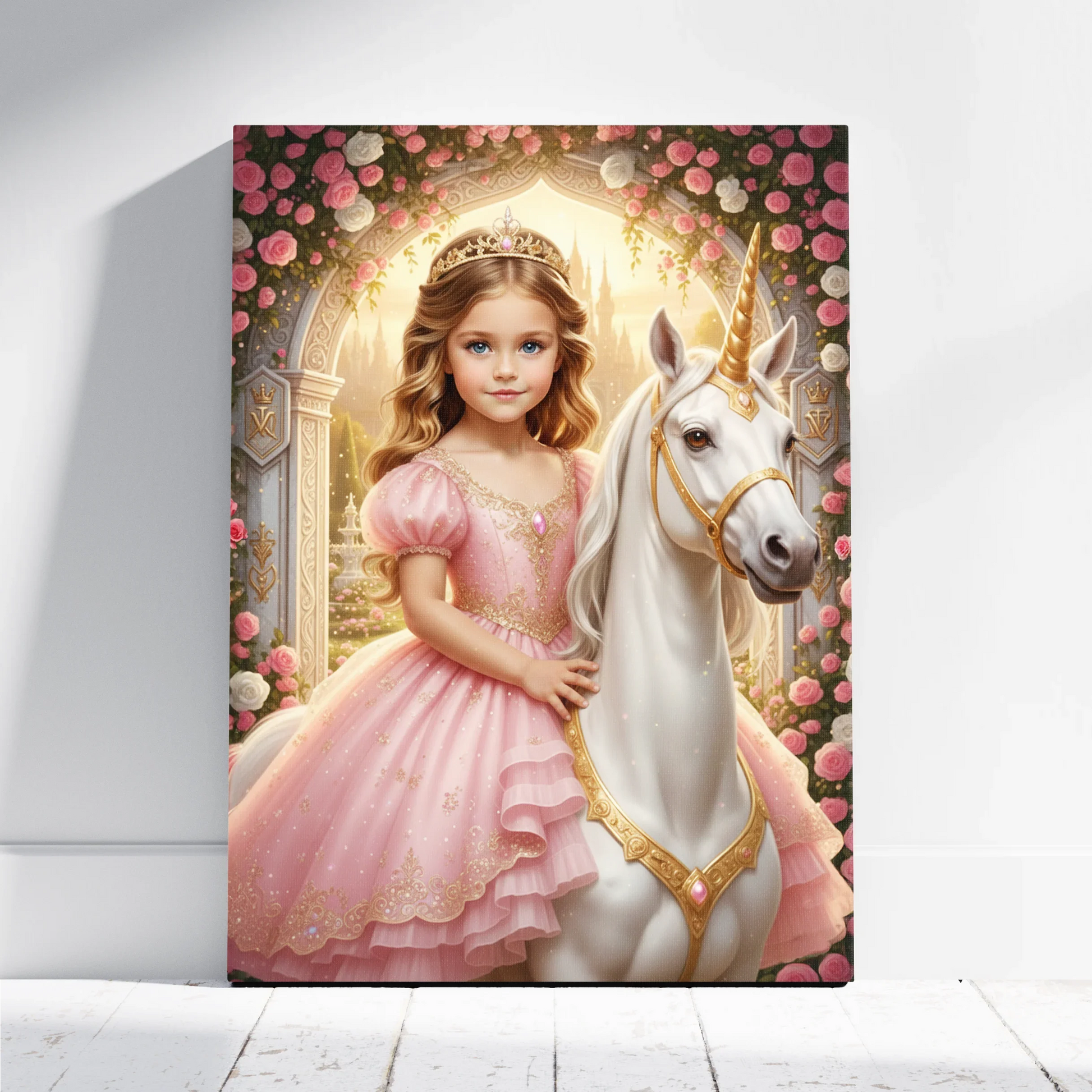 Ethereal and personalized, this canvas transforms your child into the princess of her own fairytale. With soft hues, delicate artistry, and a royal touch, it turns any room into a storybook scene.