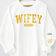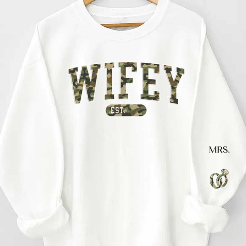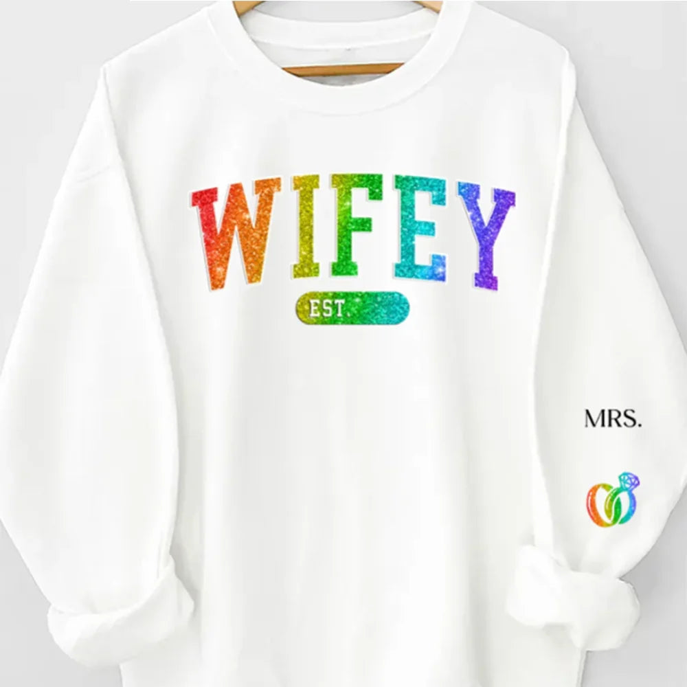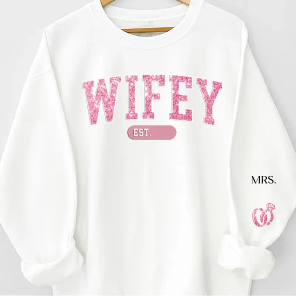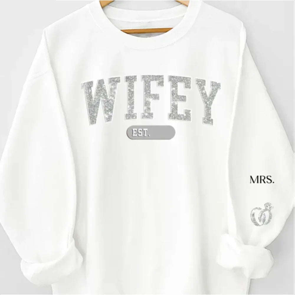 The "Wifey Est" Handcraft Sweater With Design On Sleeve is the perfect choice.